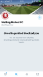 Their PR is awful, whoever takes charge of their Twitter is clearly inexperienced and inadequate. How am I going to follow Welling now that a work-experience mong has blocked me? I am not the only one either who's been blocked. God forbid anyone tweets them in the future that they thought they played badly otherwise they won't be able to keep track of the team either, or when there will be a granny pulling night in the Wings Bar that they rate higher than the club!